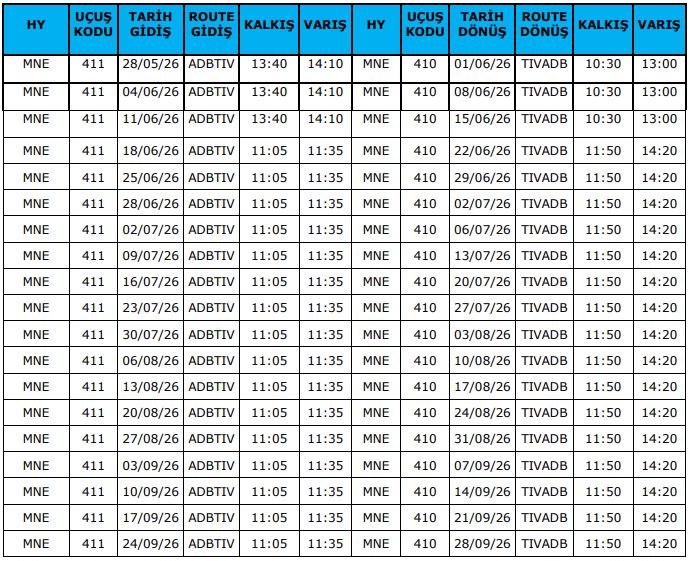 AIR MONTENEGRO HAVAYOLLARI İLE