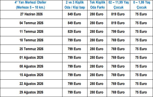 • 3 Gece 4 Gün (3 Gece Konaklama)
