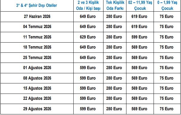 27 Haziran & 04, 11, 18, 25 Temmuz & 01, 08, 15, 22, 29 Ağustos 2026